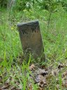 Martha L. Mullins Headstone destroyed May 7, 1855* Close up of footstone with M.L.M. |