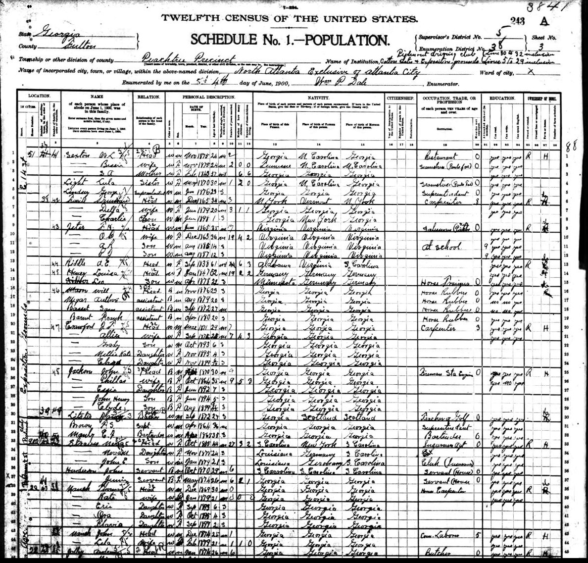 Census: 1900 at: Peachtree, Fulton Co., GA Census Image
