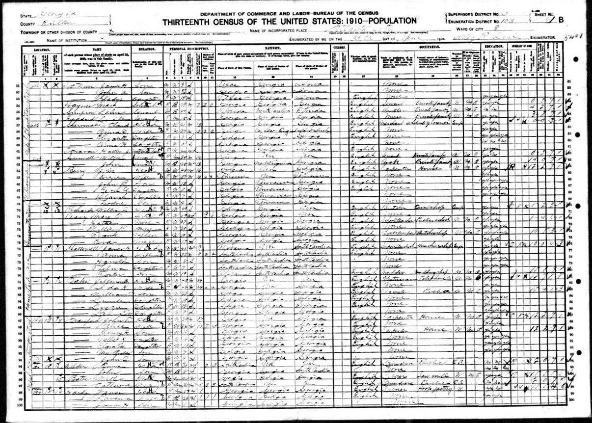 Census: 1910 at: Atlanta Ward 8, Fulton Co., GA Census Image