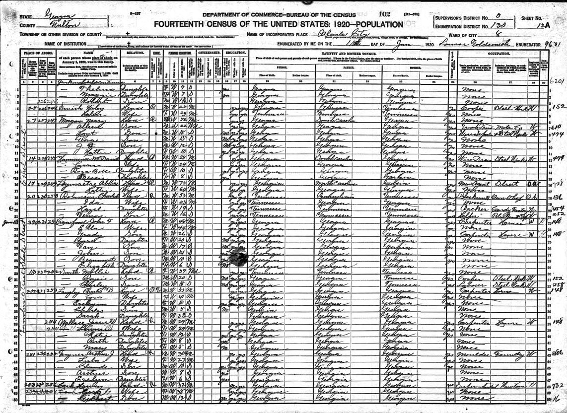 Census: 1920 at: Atlanta Ward 8, Fulton Co., GA Census Image