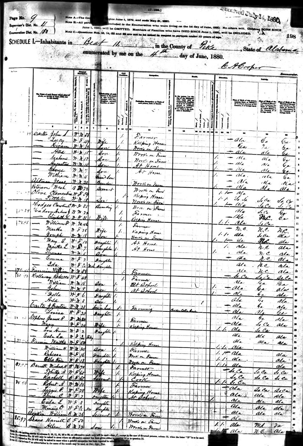 Census: 1880 at: Mitchells, Pike Co., AL Census Image