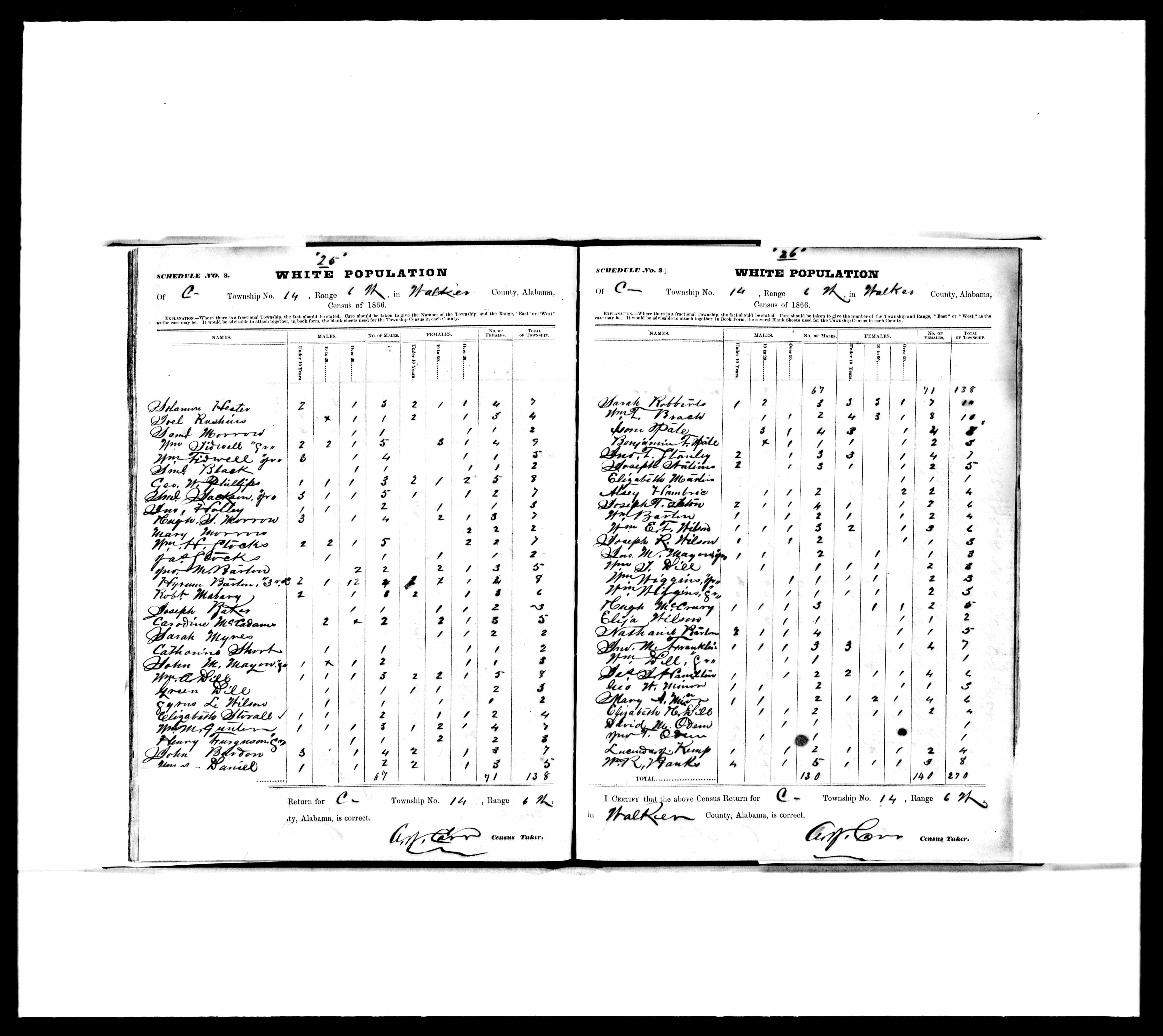 Census: 1866 at: Walker Co., AL Alabama Census of White Population Census Image