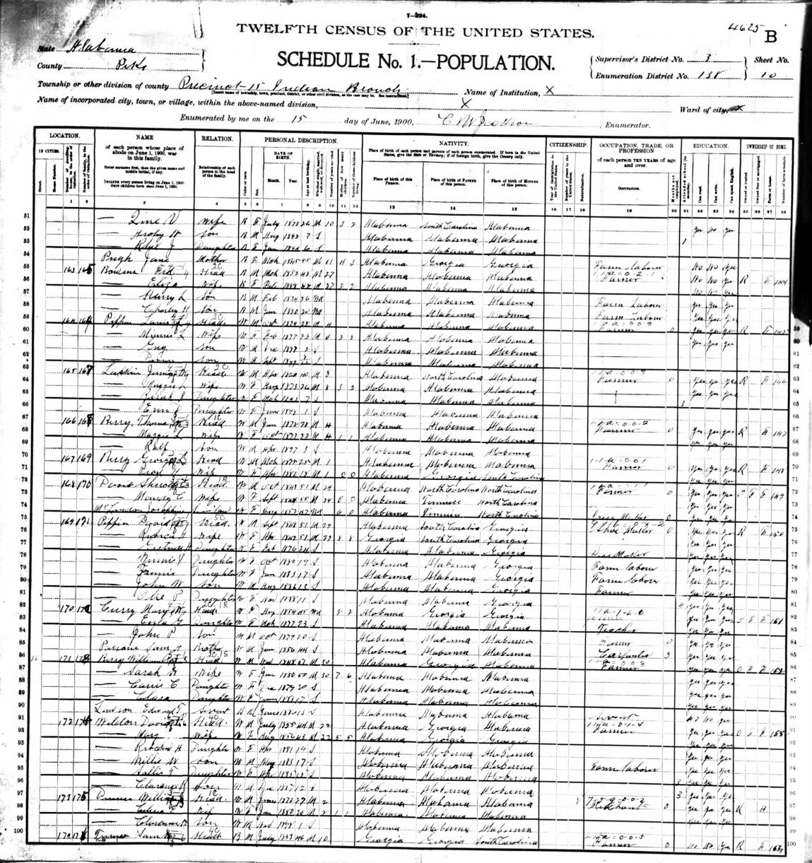 Census: 1900 at: Pike County, AL (With husband, see above)