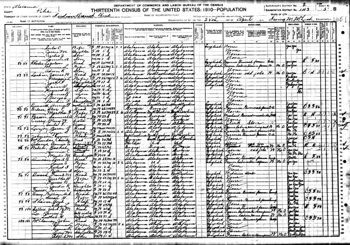 Census: 1910 at: Pike County, AL (With husband, see above)