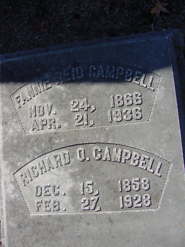 ![]() | Frannie Reid & Richard O. Campbell Frannie: Nov 24, 1866 - April 21, 1936 Richard: Dec 15, 1858 - Feb 27, 1928 | ![]() | Sara M. Reynolds Oct 19, 1900 June 2, 1949 |
