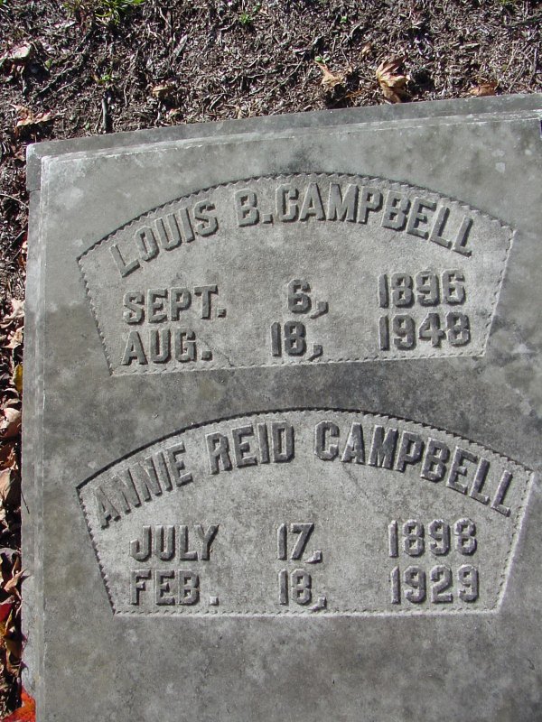 ![]() | Annie Reid & Louis B. Campbell Annie: July 17, 1898 - Feb 18, 1929 Louis: Sept 8, 1896 - August 18, 1948 | ![]() | Frances Campbell Short Jan 2, 1894 June 14, 1963 |