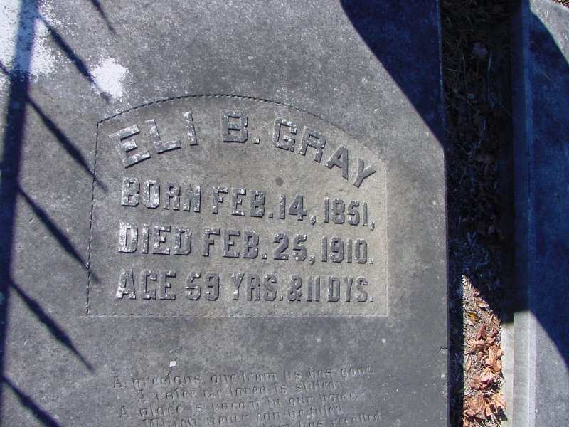 | Eli B. Gray Feb 14, 1851 Feb 25, 1910 | ![]() | Mary Jane Carter Tompkins March 22, 1947 |