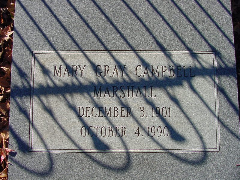![]() | Mary Gray Campbell Marshall Dec 3, 1901 Oct 4, 1990 | ![]() | W. B. Wells Aug 1, 1849 Sept 6, 1917 |