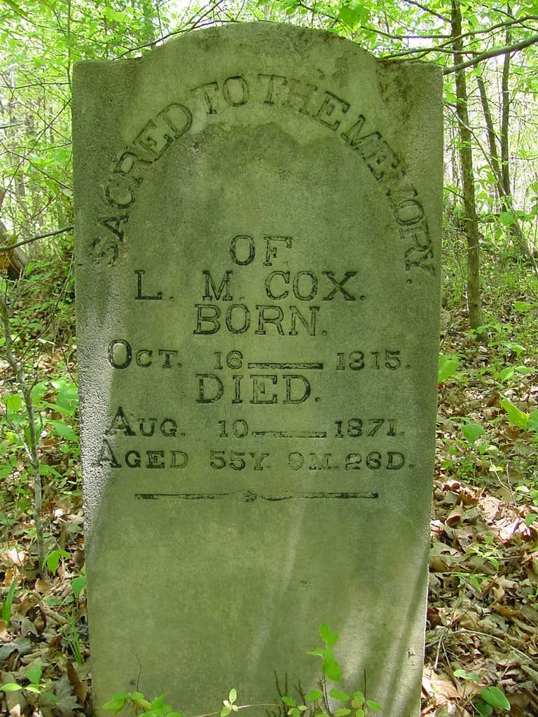 L.M. Cox Oct 16, 1815 Aug 10, 1871 Aged 52y 9m 26d | ![]() |